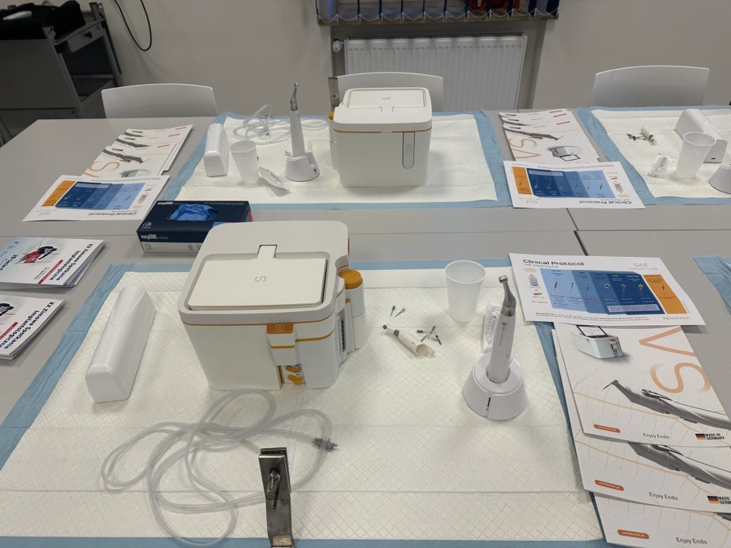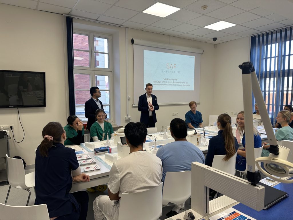 Warsztaty były kontynuacją szkolenia SAF-INFINITUM Self-Adjusting File – Evolution in Endodontic”. Studenci mieli możliwość praktycznego wykorzystania pilników SAF INFINITUM tj. preparowaniu kanałów korzeniowych w zębach wykonanych z tworzywa sztucznego.